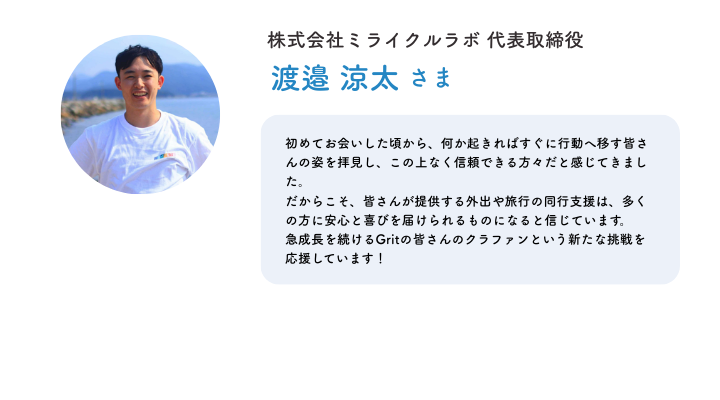 今回いただいた多くの応援メッセージは、Gritの挑戦を大きく後押ししてくれる力です。