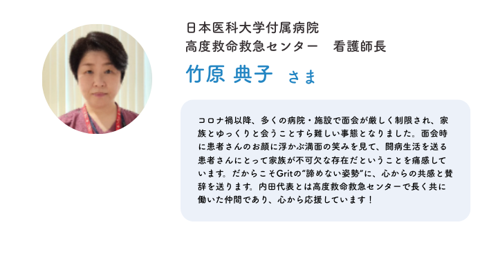 このクラウドファンディングに向けて、日頃からGritの活動を応援してくださっている関係者の皆さまより、力強いメッセージをいただきました。
